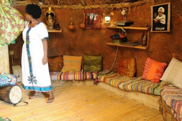 הבית שהקימו עשוי כולו מאדמה, קש וקורות עץ המשמשות כעמודים. הוא בנוי כמו אוהל גדול עגול וגגו משולש. אין בו חלונות ובחלל המרווח שבתוכו מונחים חפצים מהתרבות האתיופית, בהם כלי בית ועבודות רקמה.