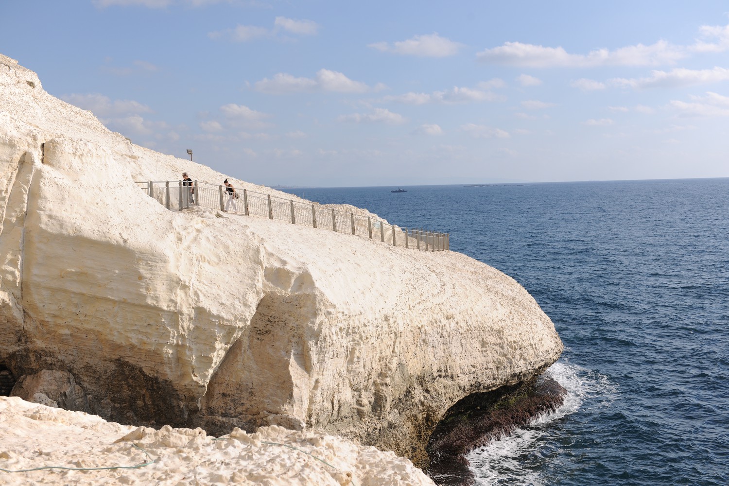 ממשיכים צפונה ומגיעים עד לצוק ראש הנקרה היפהפה שהוא הנקודה הצפונית ביותר של קו החוף הישראלי. כאן ניתן לרדת מהאופניים ולעלות על גשרי העץ הקרובים מאוד למים.