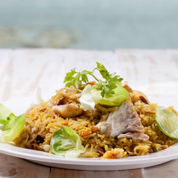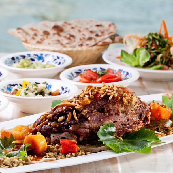 The menu at El Babor is rich and diversified, from the renowned meat dishes that gave Hussam Abbas his reputation: stuffed lamb neck, Mansaf and stuffed pullet, to sea fish grilled or fried on a skillet; a special Siniya of fish baked in Tahini and vegetables and a wonderful dish of Seafood Mukhara: assorted seafood wrapped in dough and oven baked in a clay casserole; alongside shrimps and calamari in coconut milk and coriander sauce. Desserts include among others the well-known Knafe and Malabi.