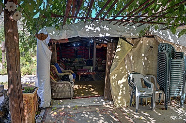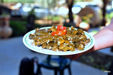 After the fascinating lecture and after Ziad answers the many questions of guests whose curiosity had been aroused, they assemble for a traditional Bedouin meal, served under the vine pergola under the branches of the mulberry tree, or in the large and beautiful tent standing in the courtyard. The meal is served on low tables, guests are seated on mattresses.