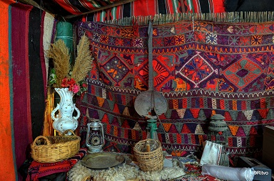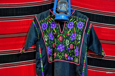 The tent’s fabric walls are decorated with beautiful hand embroidered traditional Galabias, each indicating the status of the woman who wears it; married, widow or single.