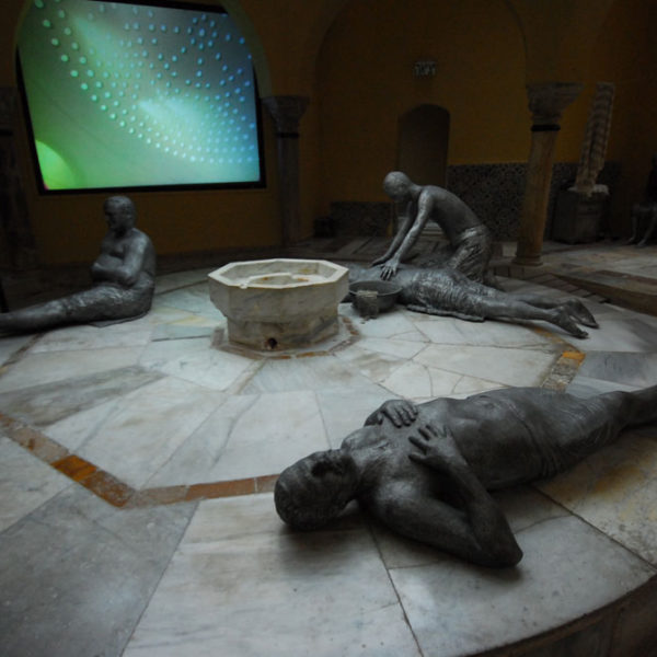 In this preparation room visitors are invited to sit facing a large screen and experience some of the Hamam’s atmosphere, for about 30 minutes, through a movie called ‘The Last Bath Attendant’. The plot of the movie describes a dynasty of bath-attendants (bath-house workers who tended to all guests’ needs – a towel, a massage, an invigorating flogging as well as a heart to heart talk or a discussion on current matters) – and lets visitors taste some of the atmosphere of the place in olden days.