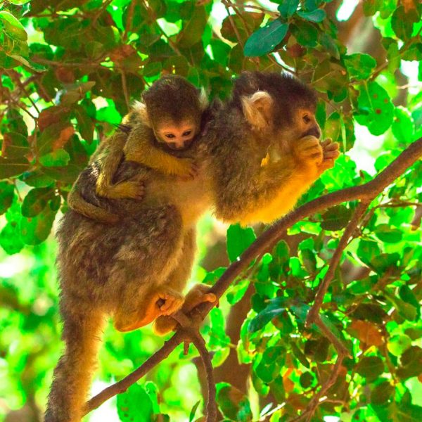 Along the first part of the route you will meet tiny squirrel monkeys who jump from rock to rock, climb on the trees or onto the visitor’s shoulder. The contact with them is personal and direct and there is always an instructor who will guide the visitors how to behave with them.