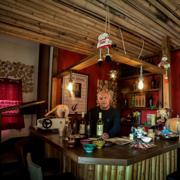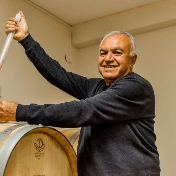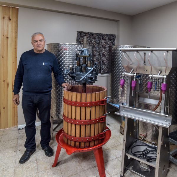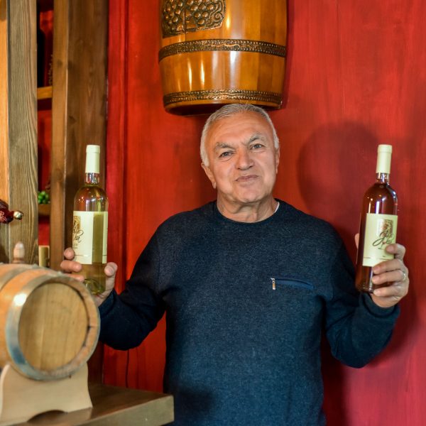 During the harvest George invites the guests to tour the vineyard, there the harvest is carried out by hand. In the shade of the twirling vines and sitting around tables they are invited to light refreshments and an explanation of the wine cultivation process.