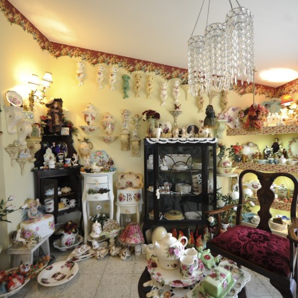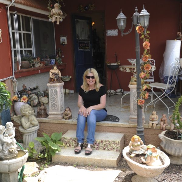 Dorit Zadok’s home shelves look like a Victorian museum of chinaware. Piles of cups and saucers, fine china plates adorned with red roses, a vase for washing hands – white with deep blue trimming – standing in a matching bowl. The flood of tableware and roses seems to have drowned not only the shelves in Dorit’s home but rather every other available space as well: the many tables, every room corner, along the stairs going in and out of the house; in other words, it can serve as a wonderful reference point for a couple trying to set a first romantic date.