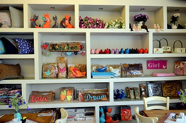 And thus, between coffee fumes and the aroma of pastry, listening to the small-talk of coffee goers, mostly local residents who are well informed of the best places to go for a cup of coffee, we managed to identify shelves laden with artworks made of ceramics, textile, glass and other materials. We also noticed the waiter-assistants working there, who seemed especially determined to do their job. Shlomi explained that these were disabled people, and that the entire complex was, in fact, built for them. The place also works as a community center providing workshops in various arts; a center where plays and lectures are held in the adjacent hall, and of course – a as a coffee house.