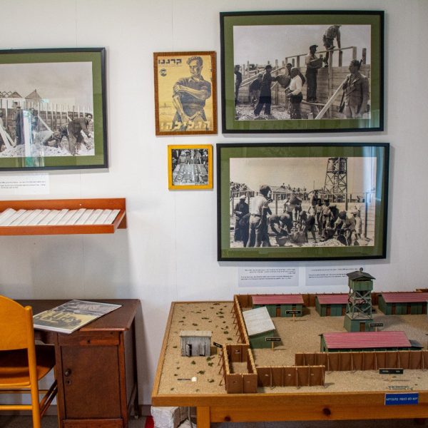 The next stop on the tour is the founders’ shed. This shed was the first one used by the settlers for residence. Inside the shed visitors can see a model recreating the settlement during the days of Homa Umigdal, photographs from the Homa Umigdal establishment days, a photograph of Shavei Zion fishermen, when fishing was one of the settlement’s businesses, pictures of the first children at Lilly’s kindergarten, the first pupils with the teachers Ze’ev and Margalit, photographs of the founders as well as photographs of the flute band and the choir.
