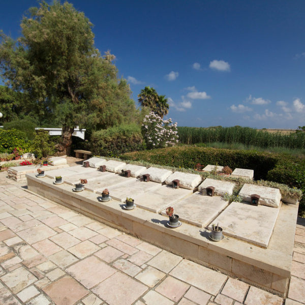 A few minutes away from Beit Yehoshua, dwells the local cemetery where seven of the fighters killed during the Acre Prison Break are buried. Shavei Zion was the only community that agreed to bury them on their premises, after other communities refused to do so. From the cemetery the tour continues towards the seashore. There, on a high mound above the sea, stand the remains of a Byzantine church; these consist of pillars overlooking the sea and a beautiful mosaic floor.