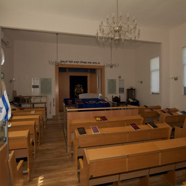 After visiting the Rexingen Room and the wall commemorating those who died in the holocaust, the tour returns to the synagogue and the adjacent building of the first school and the kindergarten, currently used as the settlement’s offices.