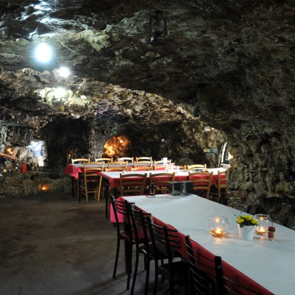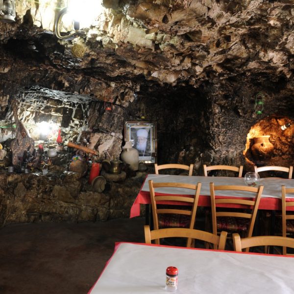 A rustic eastern style restaurant located inside a cave that served as a pen for goats until the 1990’s. The fact that the restaurant is situated inside a cave instills a special atmosphere.