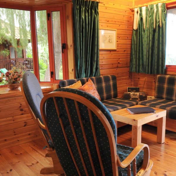 The first thing that catches the eye upon entering the very green garden known as ‘Fruit Scent’ are the tall beautiful wooden chalets scattered around the premises. Another look reveals details such as the bird-of-paradise plant hinting to the vacation in store, a small playground indicating the treatment awaiting the little guests in the group and a large willow tree bestowing a welcoming, home feeling.
