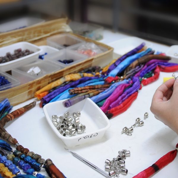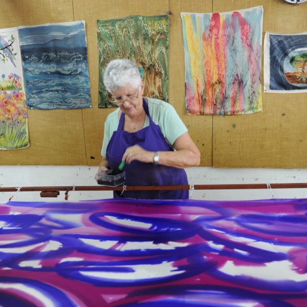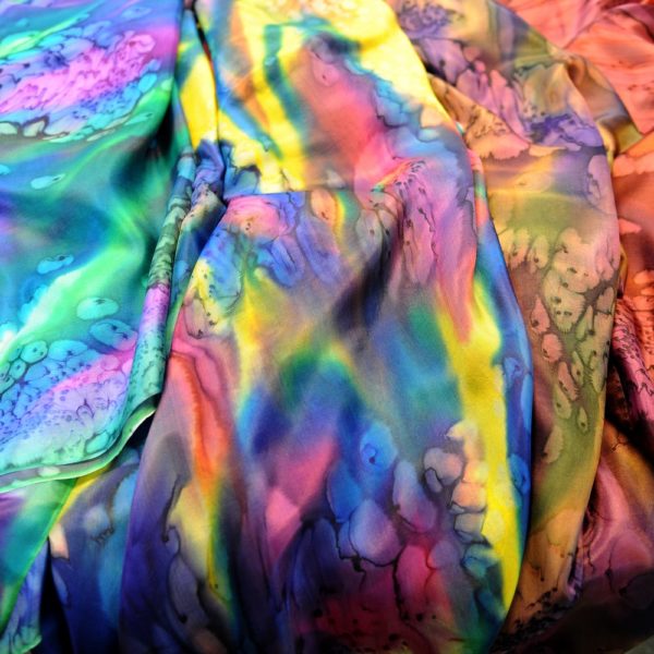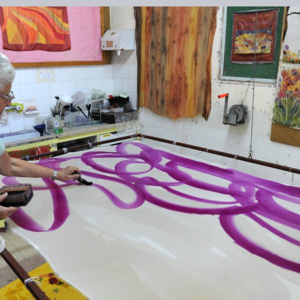 Shlomit teaches how to use the dyes on the fabric and then the creation process begins: participants each select colors according to their own taste and preference, and gently dye the fabric, from which they create a scarf, a picture or a silk accessory.