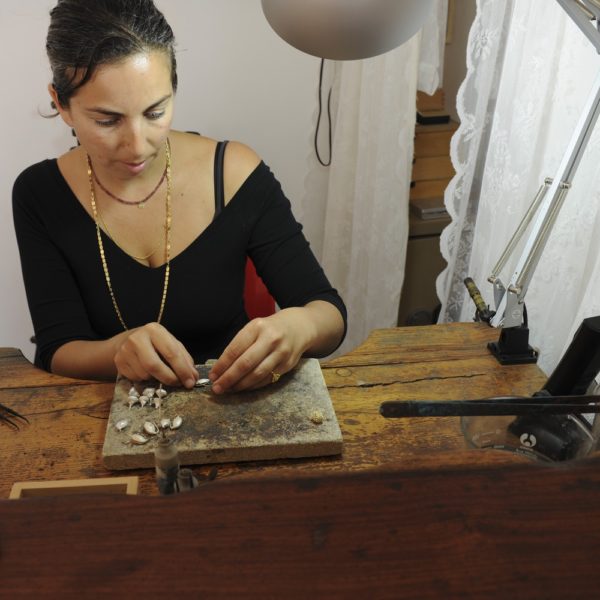 Stefany Egozi sits by her desk, her hands skillfully holding pincers and a plier. While she magically creates a new piece of Jewelry, a woman and a girl – mother and daughter – enter her studio and Jewelry store, located on a small street in Shavei Zion. They came to Stefany’s especially from Nahariya. In two days the mother’s other daughter is getting married, and she came to Stefany, whom she knows very well, to buy her teenage daughter bracelets and Jewelry for the wedding.
