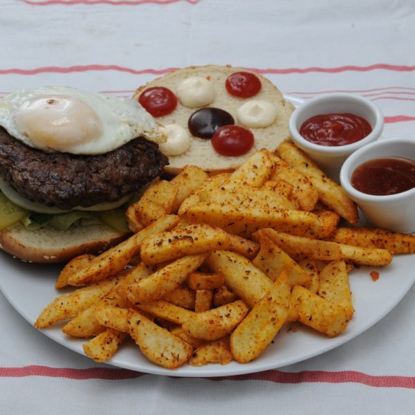 Contrary to fast-food stands, Eli’s hamburgers are served to the table, restaurant-style, as befitting the quality ingredients and the effort invested in each and every dish separately according to the order. The menu can also be found on the back of employees’ shirts (“not all of it, but the important stuff”). In any event, in order to shorten the way and simplify travelers’ hesitation we would like to remind them that the signature dish is the ‘Hamburger Eli’ weighing 220 grams. Diners interested in larger portions may have the ‘Truly Hungry’ weighing 320 grams. Those who desire smaller portions may suffice with the ‘Half Eli’ or the ‘Spilt Hamburger’, the ‘Course in a Bowl’, one of the stir-fried dishes or the chicken breast dish. The seasoned French-fries served in a basket or on a plate is a course in itself for those addicted to this genre.