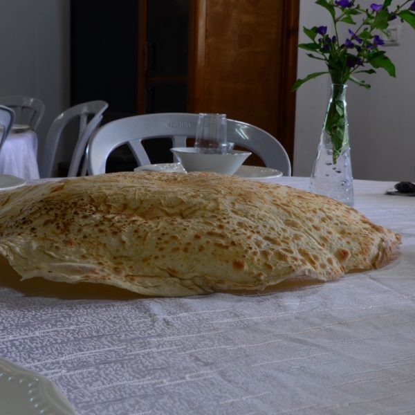 Shula greets her guests with a warm welcome, invites them to the family living room where tables full with the very best starters await them, alongside cold beverages and Kurdish bread baked by Shula.