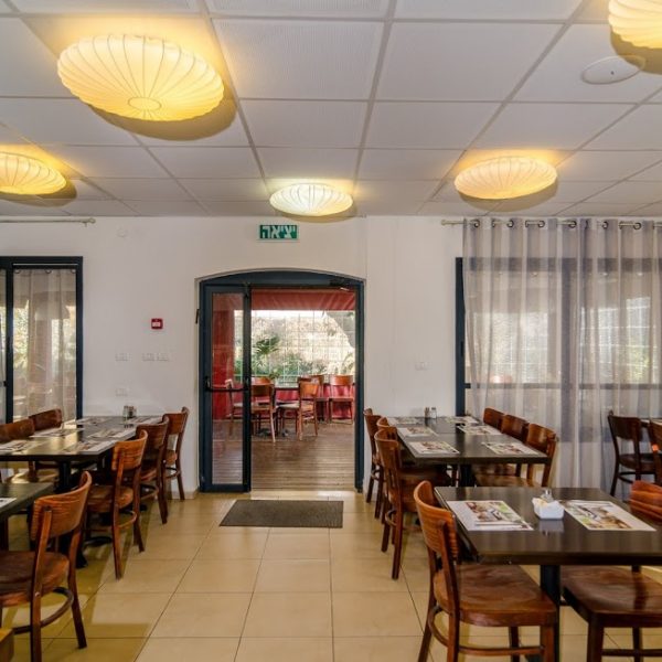 חדר האוכל המחודש, שסביבו מרפסת רחבת ידיים, מגיש ארוחות בוקר (קיימת אפשרות לארוחות ערב), קפה, תה ושתיה קלה, ללא תשלום, לאורך כל היום והלילה.