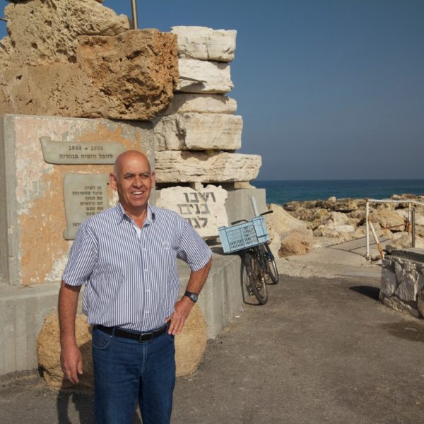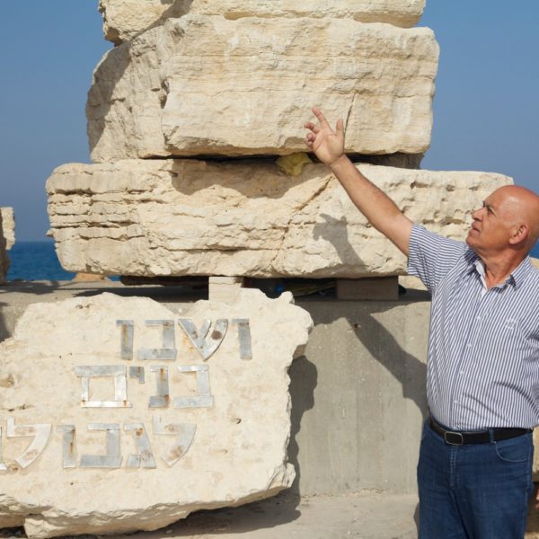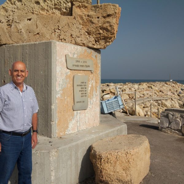 הפסל עומד על המזח של נהרייה באזור הימייה וכאן מספר להם דניאל סיפורי העפלה מרתקים מהתקופה שבה נהריינים צעירים היו שותפים להורדת מעפילים מהים אל החוף.