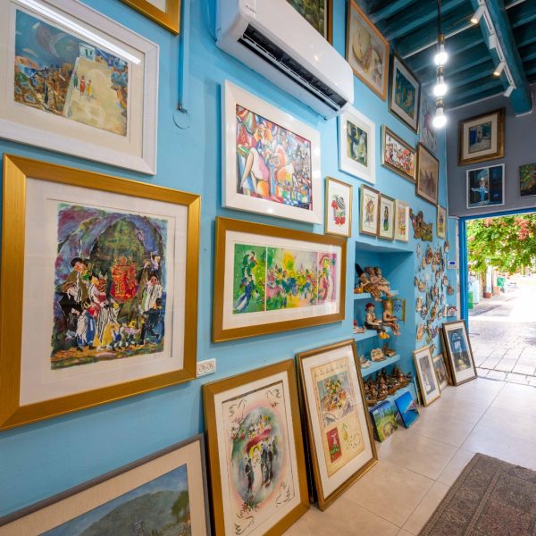 הגלריה הגדולה ורחבת הידיים מציגה אמנים מהשורה הראשונה כמו: מארק שאגאל, דוד גרשטיין,יעקב אגם, מנשה קדישמן, משה קסטל, יוסל ברגנר, הרמן שטרוק, יוסף רזניקוב, לאה בשן, רות בלוך ואחרים.  סך הכל מציגה הגלריה כ85 אמנים ישראליים, בעבודות מקור ורפרודוקציה, לצד אמנים ערבים בהם האמן המחונן ג'מאל דיוואני.