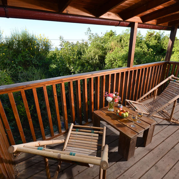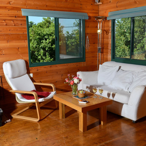 בכל בקתה פינת ישיבה רומנטית ולידה טלוויזיה עם ערוצי לווין, את הבקתה מקיפה מרפסת עץ רחבה וקסומה ובה רהיטי גן וערסל.