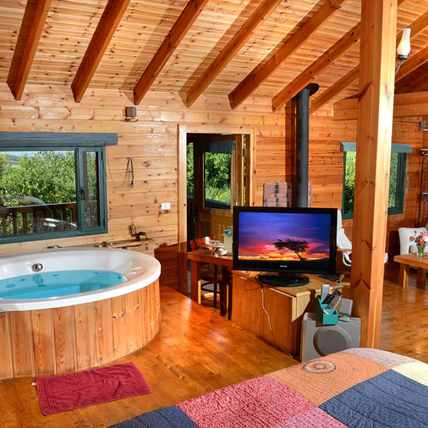 לכל בקתה ג'קוזי עגול, ליד חלון ענק המשקיף אל החוץ, תאורה רומנטית, אח עצים, המקנה אווירה מכושפת בחורף, מיטה זוגית רחבה ונוחה, חדר רחצה מאובזר, מטבחון ובו קומקום, מיקרוגל, פלטה חשמלית, תבלינים ופינת קפה ותה.