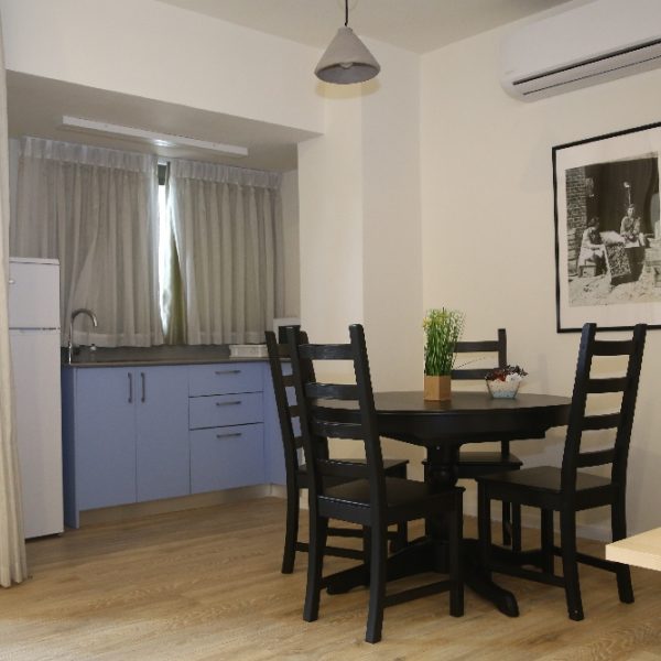 במשפחתיות- שני חדרי שינה, חדרי אמבט מרווחים, מטבחון מאובזר ולכל דירת אירוח מרפסת ועליה רהיטי גן.