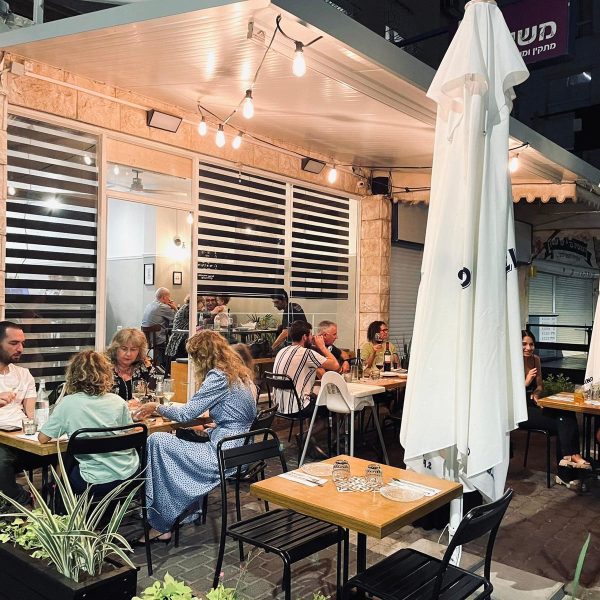 המסעדה קטנה, מציעה מספר מקומות מוגבל בפנים וגם ישיבה בחוץ.
