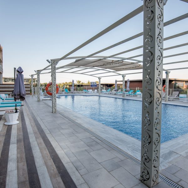 בריכת שחיה גדולה ומרווחת עומדת לרשות האורחים, מוקפת בכיסאות מרגוע ובשמשיות. לבריכה יוצאת מרפסת מלובי המלון, להנאת האורחים המעוניינים לשבת בחוץ. צמודה לבריכה בריכת פעוטות.