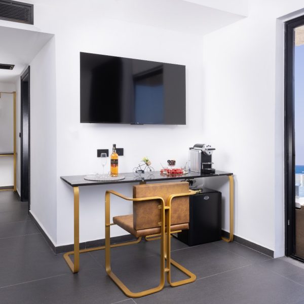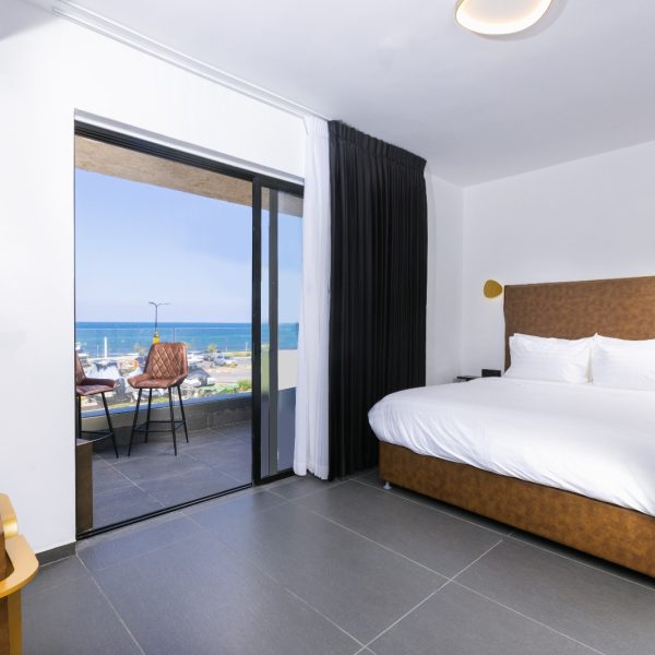 בכל אחד מחדרי המלון נשקף נוף לים, לכמה מהחדרים מרפסות גדולות הפונות לים והסוויטה מתהדרת באמבט ג'קוזי על המרפסת.