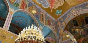 המסעדה גדולה מרווחת ומפוארת, תקרתה מקומרת ומצויירת בסגנון מזרחי ומנורות שנדלייר משתלשלות ממנה.