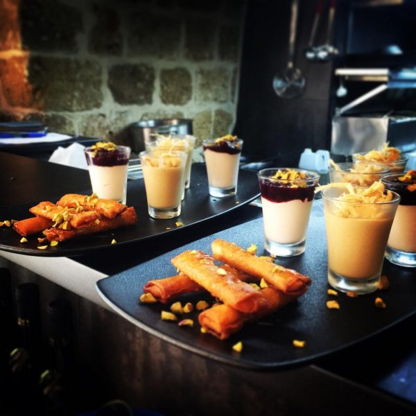 בגזרת הקינוחים;  סיגר בקלווה חם עם גלידת וניל 'פרפה חלבה המפורסם של אורי ארנולד עם שערות חלבה ושברי פקאן מלבי בסירופ רימונים.