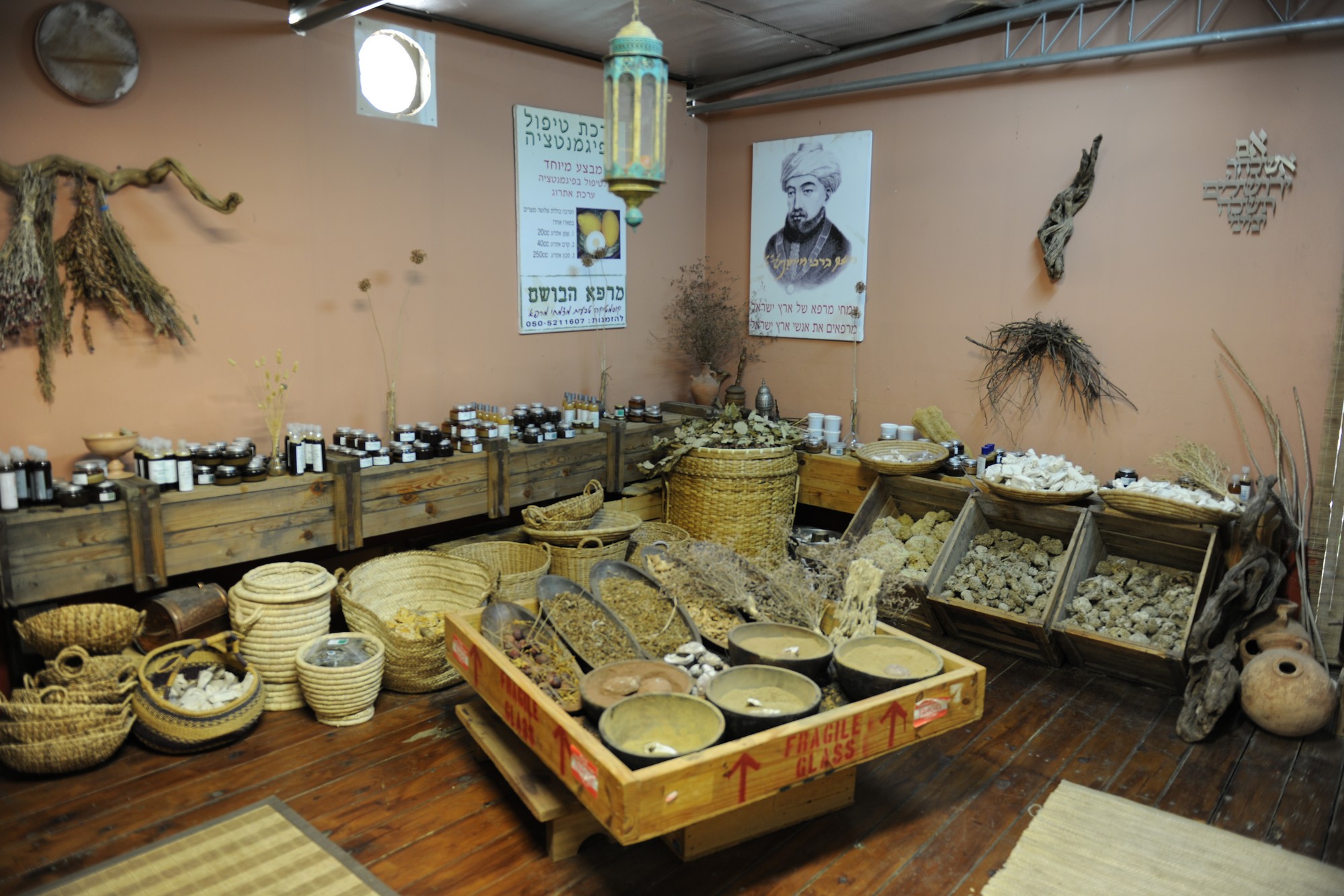 סלסלות קש ענקיות גדושות בכל טוב, בקבוקי ענק עם פקקי שעם חובקים בתוכם יינות ומשקאות מרפא, ומדפים הפרושים לכל עבר אוצרים בתוכם שלל תרופות, משחות ומיני מרפא שנעשים כולם כאן, סביב החנות הייחודית שממוקמת במרכז קיבוץ כברי.