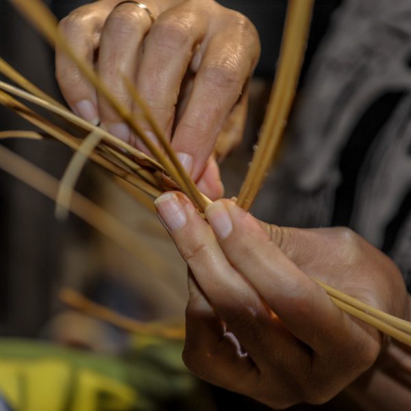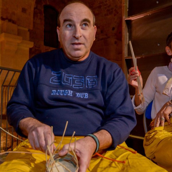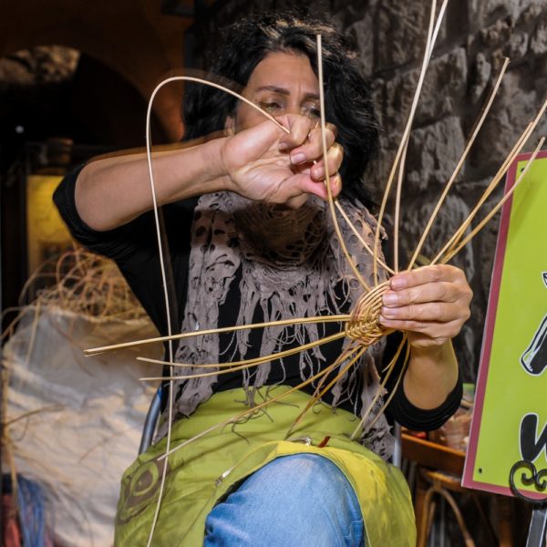 סימה המכונה סימה סלימה מעבירה סדנאות של קליעת סלים.