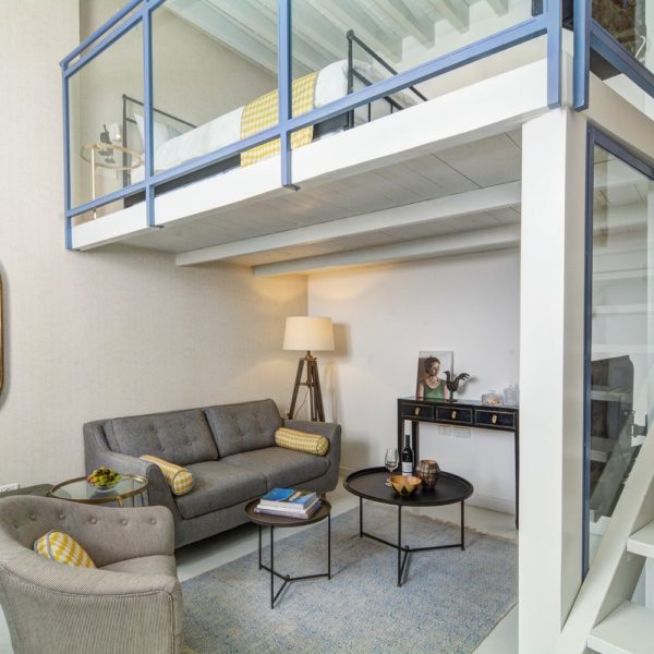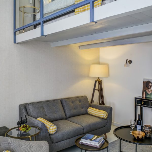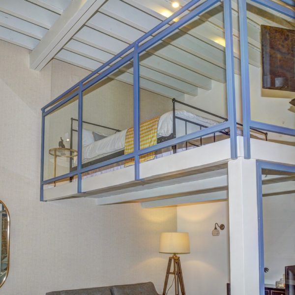 בקומה העליונה של הסוויטה גלריה בסגנון לופט המיועדת לעד 4 ילדים. דירה למשפחה ובה שני חדרי שינה סלון משותף מרפסת ומטבח מאובזר.