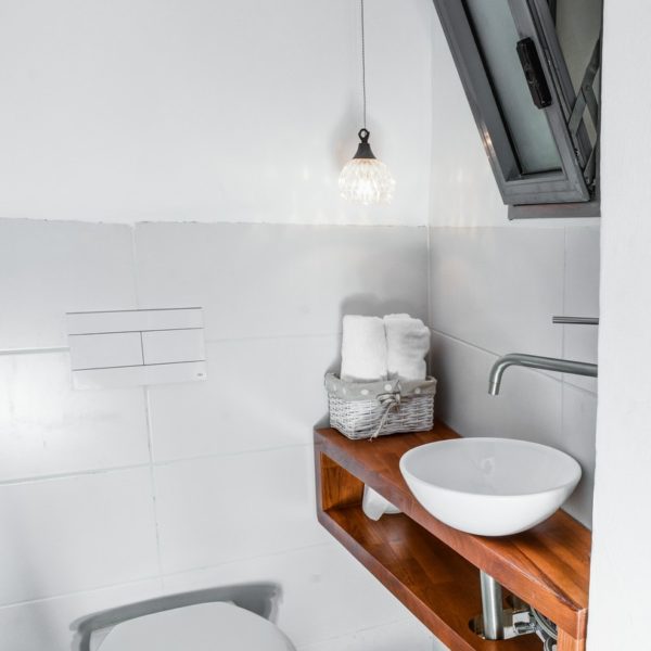גם כאן יש בחדר הרחצה מוצרי טואלטיקה, חלוקי אמבט ומקלחת ראש גשם.