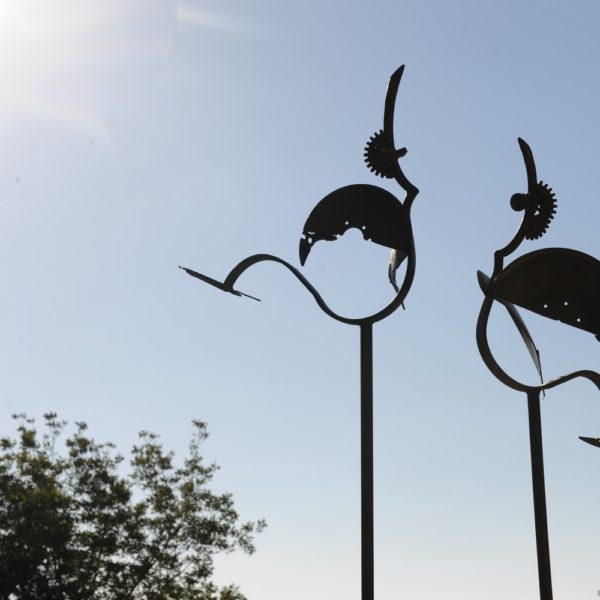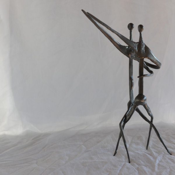 בתוך בוסתן קטן מתחת לביתו שבקיבוץ כברי יוצר אברום (עמרם) גבאי את פסלי הברזל והקרמיקה. הפסלים אינם כבדים למראה, הם דקים ושבריריותם מטעה, כאילו יכולים היו לפרוש כנפיים ולעוף. אברום אוהב לפסל דמויות אדם דקות גפיים, עיזים, ציפורים העומדות על רגל אחת ובני צאן שלכל אחד מהם ישנה אישיות נפרדת והמשותף לכולם הוא שהם נראים כאילו הם ממש תוך כדי תנועה.