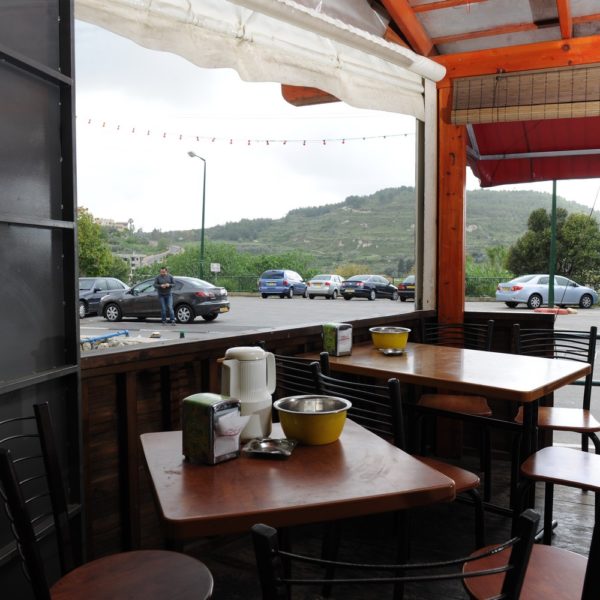 הפלאפל נמכר בתוך בית עץ ברחוב השוק. אפשר לאכול בישיבה בתוכו או בחוץ על המרפסת.