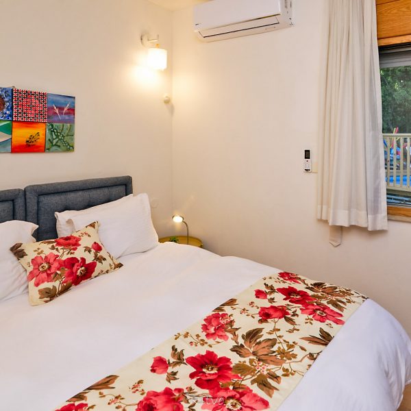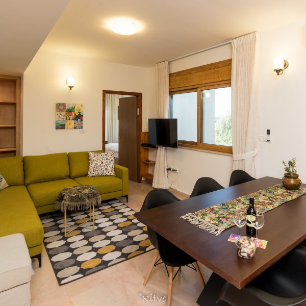 לסוויטה שתי מרפסות הפונות אל הנוף,שני חדרי רחצה, האחד רחב במיוחד ובו אמבט ג'קוזי גדול. המטבח מאובזר לפרטי פרטים: מקרר, כיריים, תנור,מיקרוגל , קומקום חשמלי,,כלי אוכל סירים ומחבתות ועד למכונת כביסה, הכלים מוגעלים וכשרים.