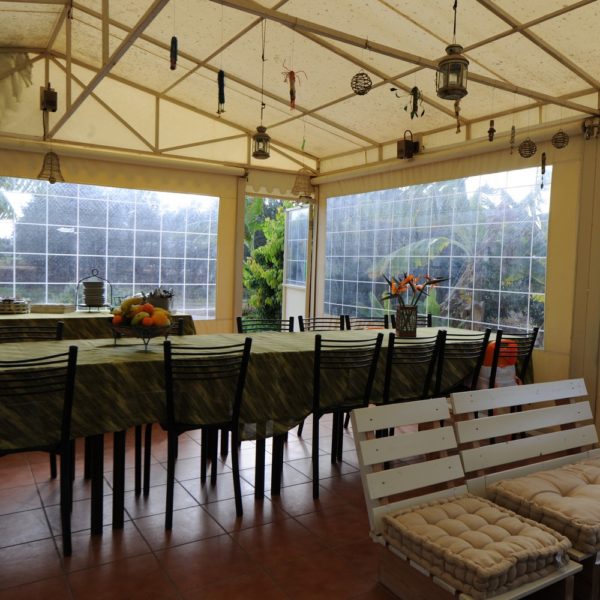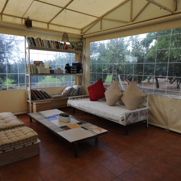 לכל אחת מהבקתות צמודה מרפסת עם שולחנות וכסאות ואפילו מאוורר, המצנן בקיץ.