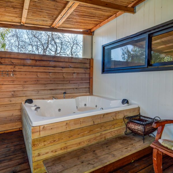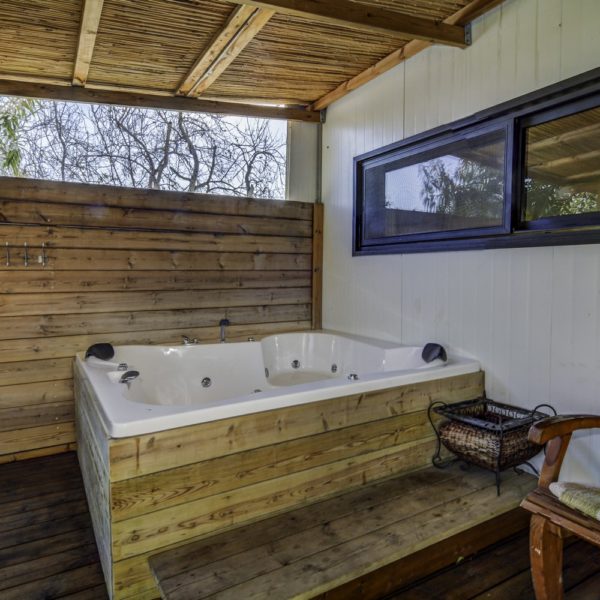 לצימר "שביל הרותם" צמודה מרפסת רחבת ידיים ומקורה ובה ג'קוזי גדול לעד חמישה אנשים, שולחן אוכל, כיסאות וכורסאות מנוחה..