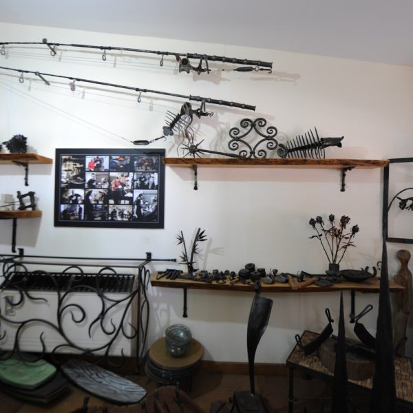 יש שם קיפודים תמימי מבט שקוציהם סיכות ברזל מחודדות, בצדם מתגודדים כבשים ומולם ניצבים כלבים – כולם פסלים עשויי ברזל. תוכלו למצוא על המדפים גם קופסאות מתכת בגדלים שונים, כלי מטבח שימושיים, גרזנים חדים כתער וכלי בישול יצוקים. על הרצפה עומדים כמה שולחנות ושידות מסיביים המשלבים הרבה עץ טבעי עם ברזל.